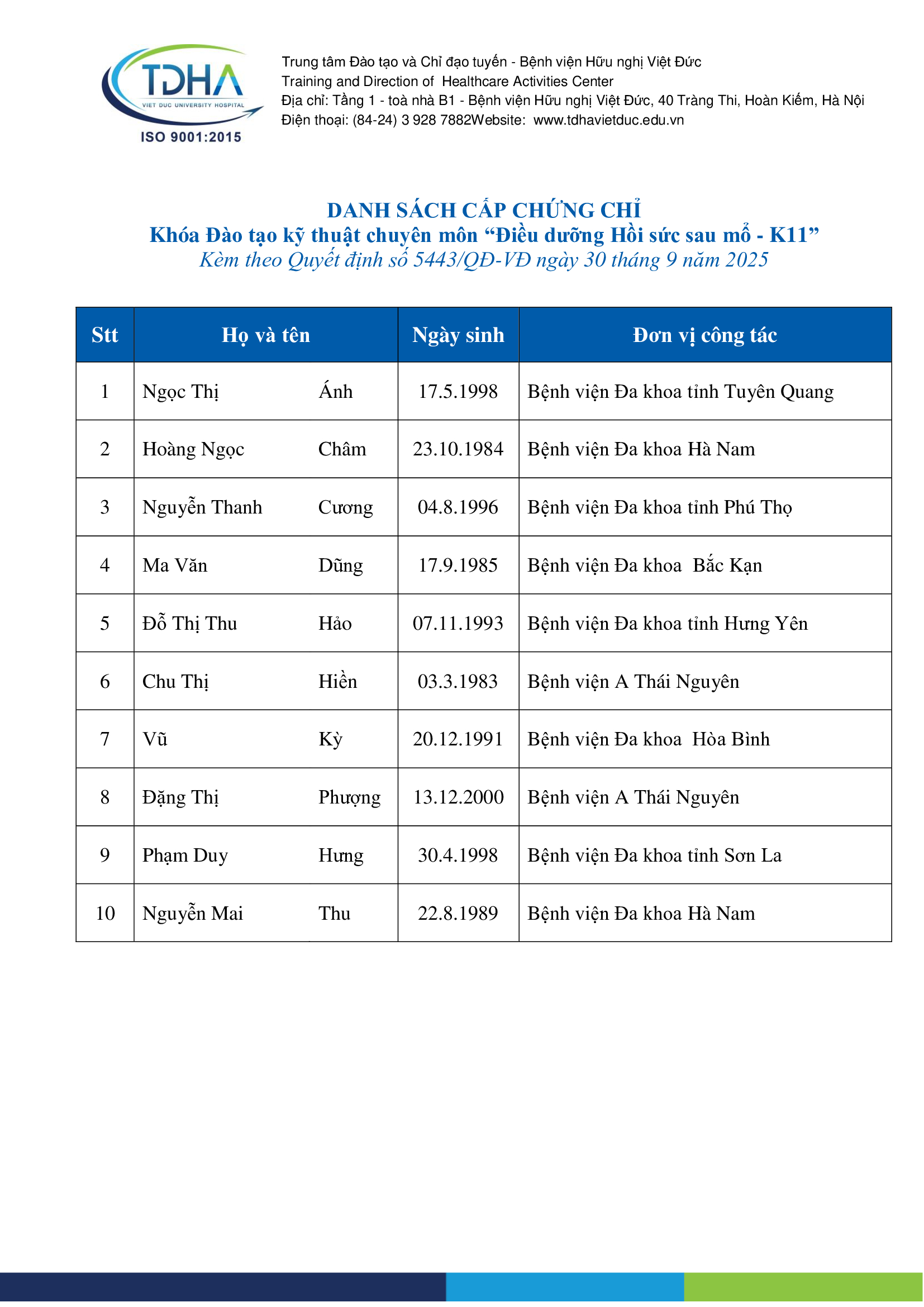 Home Đào tạo liên tục Các khóa đào tạo liên tục Danh sách cấp chứng chỉ các khóa đào tạo kỹ thuật chuyên...
