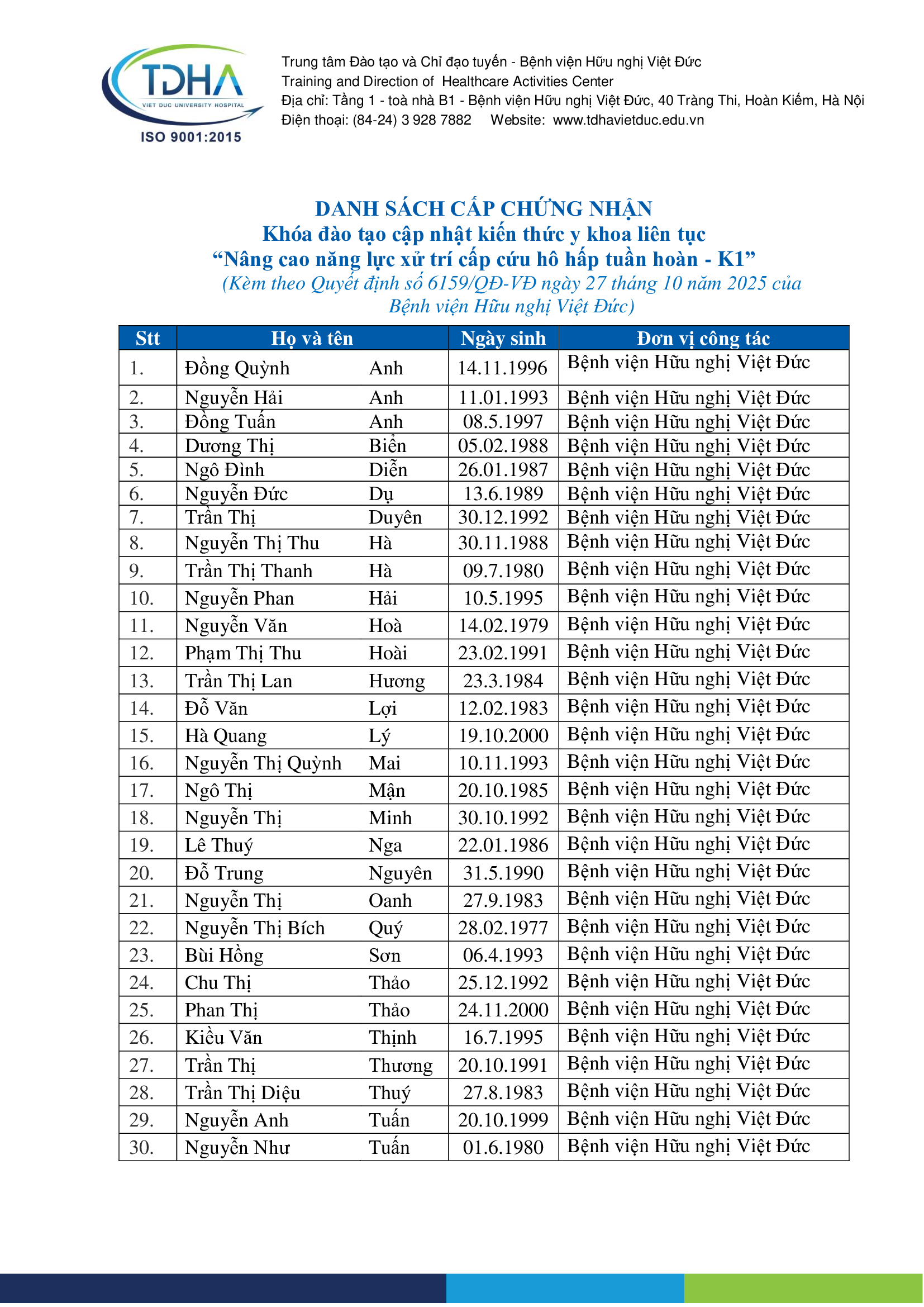 Home Đào tạo liên tục Các khóa đào tạo liên tục Danh sách cấp chứng chỉ khóa đào tạo cập nhật kiến thức...