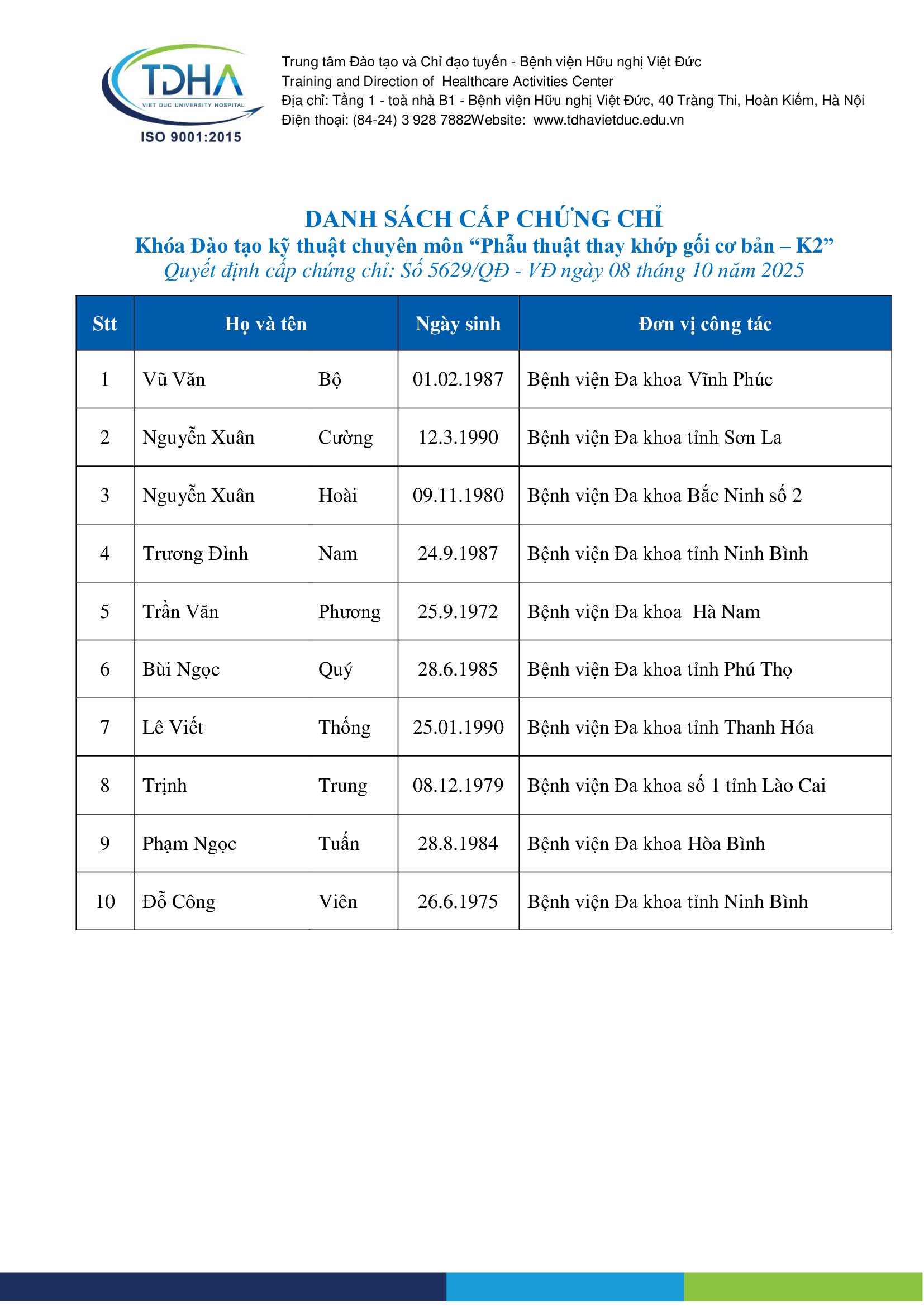 Bệnh viện Hữu nghị Việt Đức là trung tâm khám chữa bệnh, đào tạo, nghiên cứu khoa học, y học hàng đầu. Trong thời gian qua, bệnh viện đã tổ chức thành công nhiều khóa đào tạo để trang bị kiến thức chuyên môn cho đội ngũ y, bác sĩ.