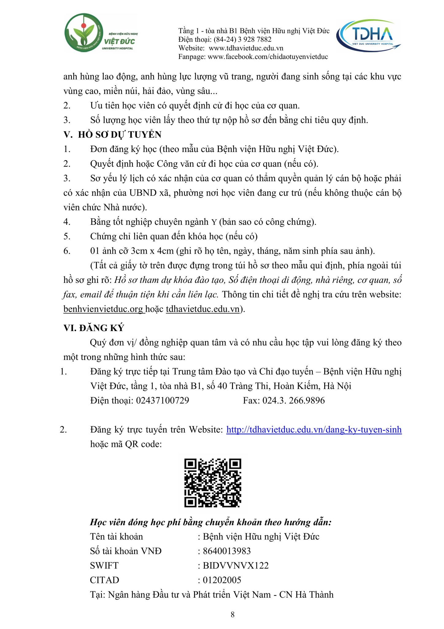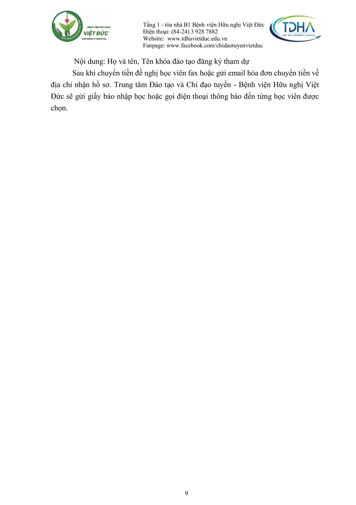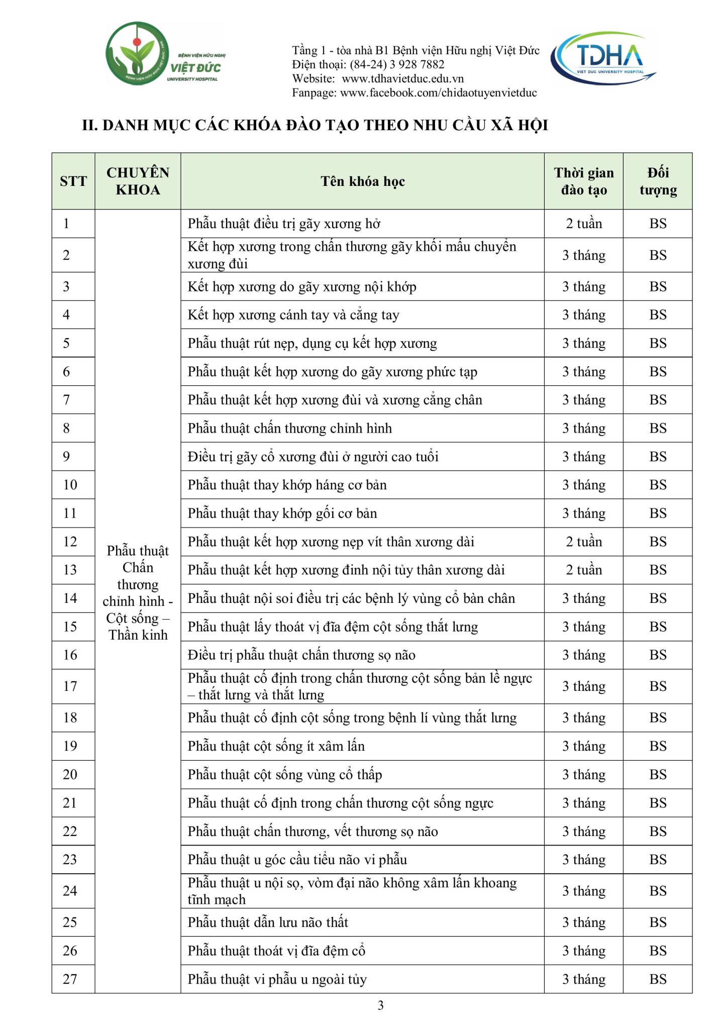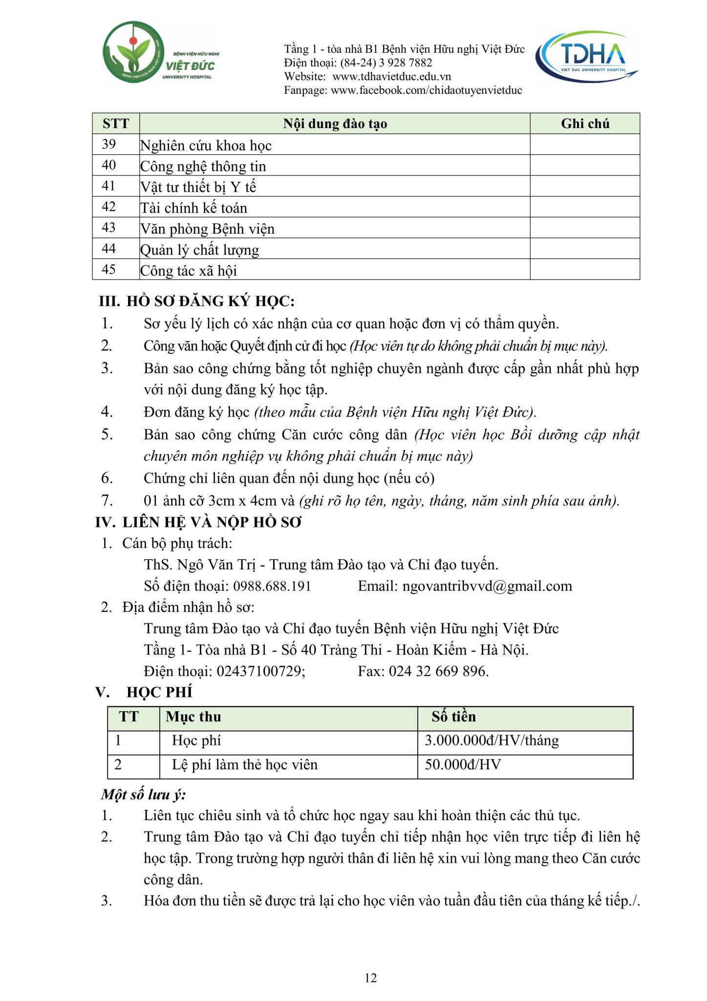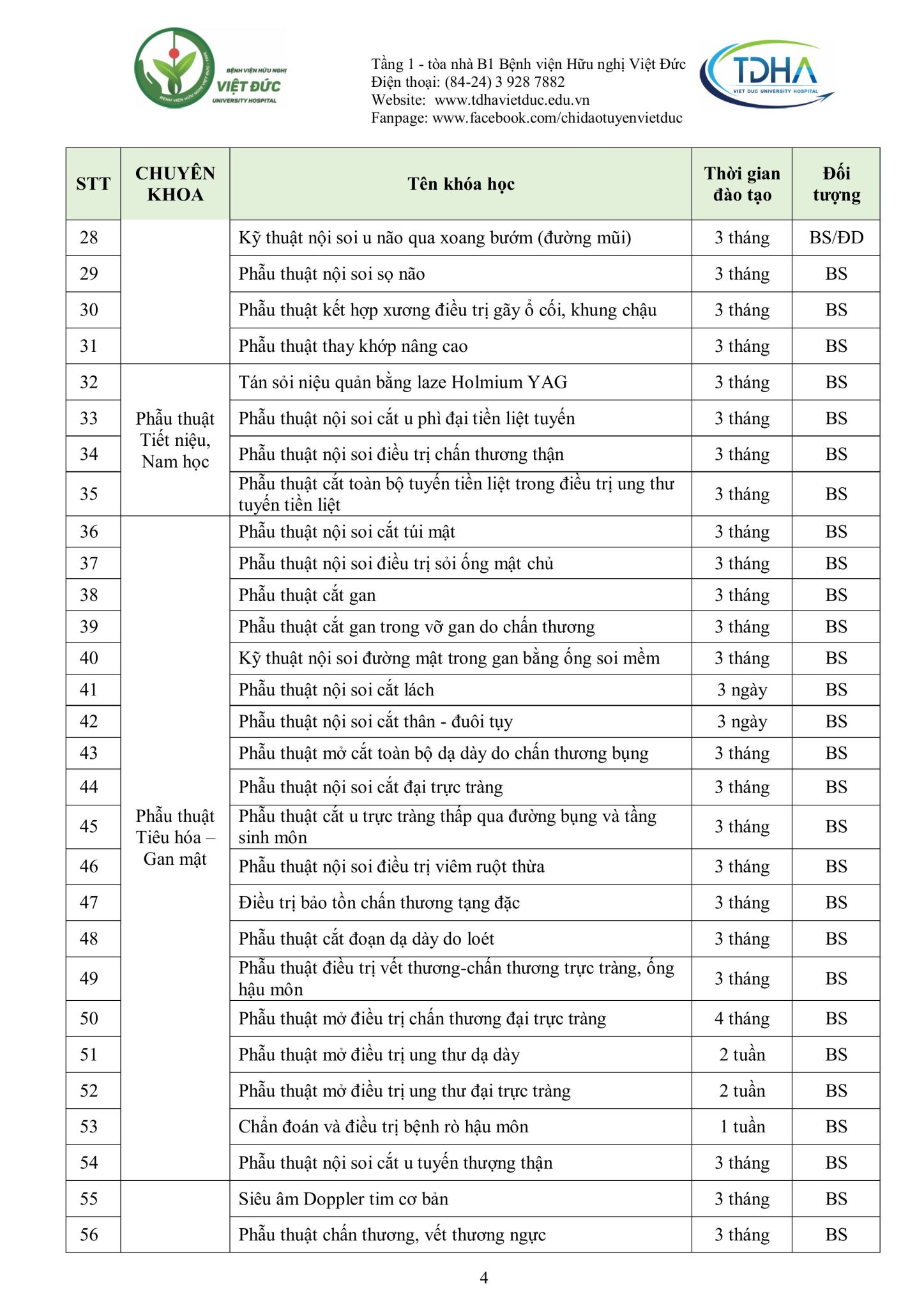 Nhằm trang bị kiến thức, kỹ năng, phương pháp điều trị mới cũng như chia sẻ kinh nghiệm thực tiễn và nâng cao trình độ chuyên môn từ cơ bản đến chuyên sâu cho các cán bộ y tế, đồng thời hỗ trợ các bệnh viện từng bước nâng cao chất lượng khám, chữa bệnh, Bệnh viện Hữu nghị Việt Đức trân trọng kính gửi Quý đơn vị/đồng nghiệp kế hoạch đào tạo liên tục năm 2025 (Phụ lục đính kèm).